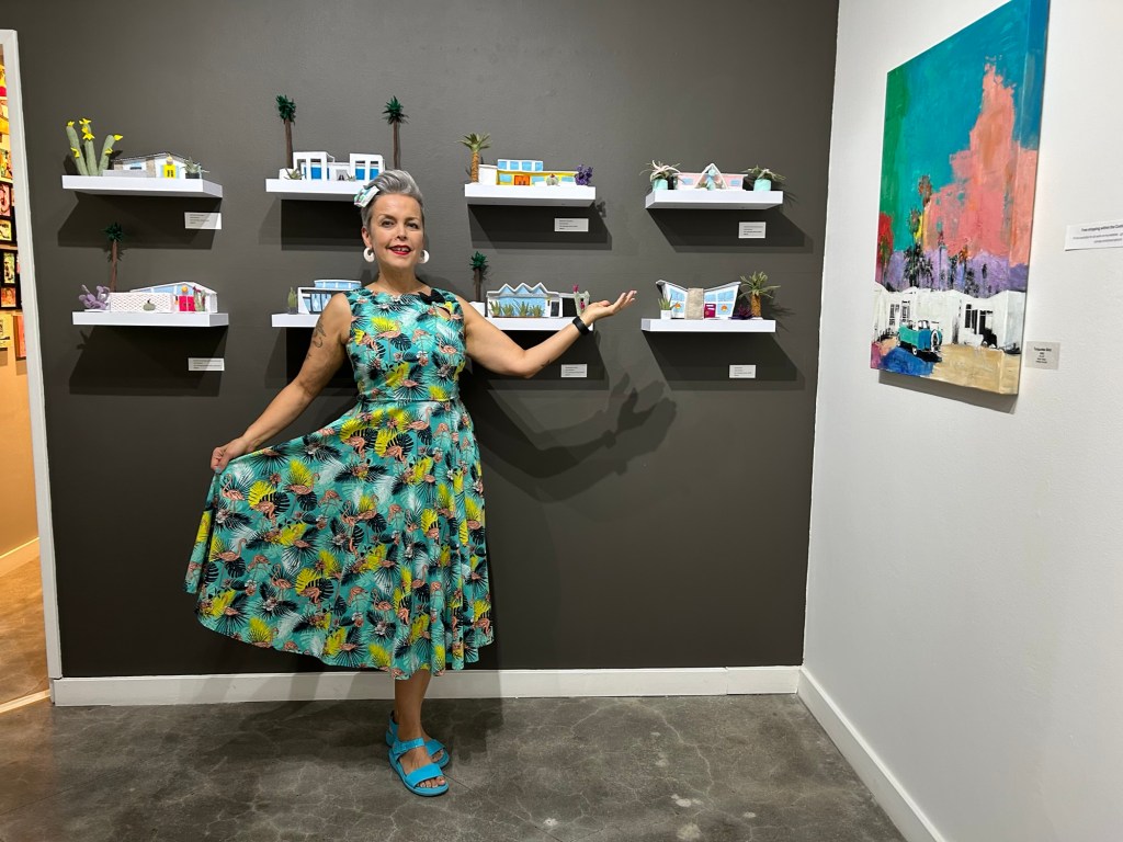 My felt sculptures started with a longing for a sense of serenity during the Covid pandemic. In 2020 everyone was on lockdown, inside their homes, and full of anxiety and loneliness. I yearned for the relaxed, pastel-colored whimsey of design of the desert and those mid-century modern homes of Palm Springs. Using felt and embroidery has always been my favorite visual and tactile medium. I started designing and constructing little houses that reminded me of the miniature model holiday villages. After I figured out how to make one, I had to start on the next one, and the next, and figure out how to construct a palm tree, a cactus, a car, a mini camper, and got more inspired with each discovery. Each piece I designed was a puzzle to decode, and I loved the challenge of every attempt to represent real life in a gentle, felt, mini version of reality.