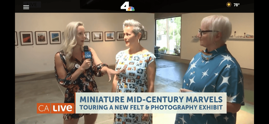 Modville: Celebrating Mid-century Modern Architecture in Felt and Photography is the creation of artists Linda Santiman and Deb Smith (photographer). Linda Santiman constructs felt miniature MCM houses as an homage to blissful, whimsical architecture, and reclaims them for attainable queer spaces, while Deb Smith captures the architecture on film.